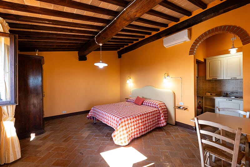 “il Ginepro” è un monolocale con letto matrimoniale, cucina e bagno. Può ospitare 2 persone con la possibilità di aggiungere un posto letto singolo.