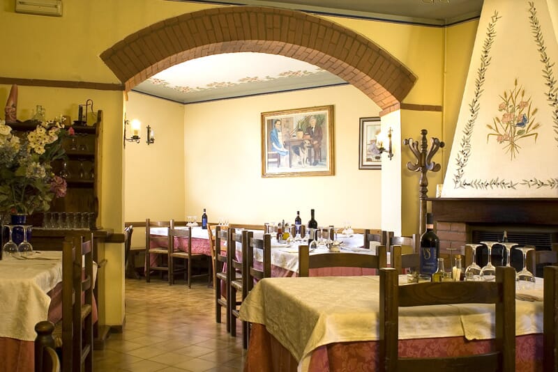 Il piatto forte è sicuramente la pasta fresca preparata a mano ogni giorno: tagliatelle pinci e ravioli da abbinare con i sughi di pomodoro, ragù, funghi o lo speciale ragù bianco al Brunello. Anche i secondi piatti non sono da meno, sempre nel rispetto del territorio viene cucinato il cinghiale in umido, il delizioso coniglio al Brunello, salsicce e fegatelli.